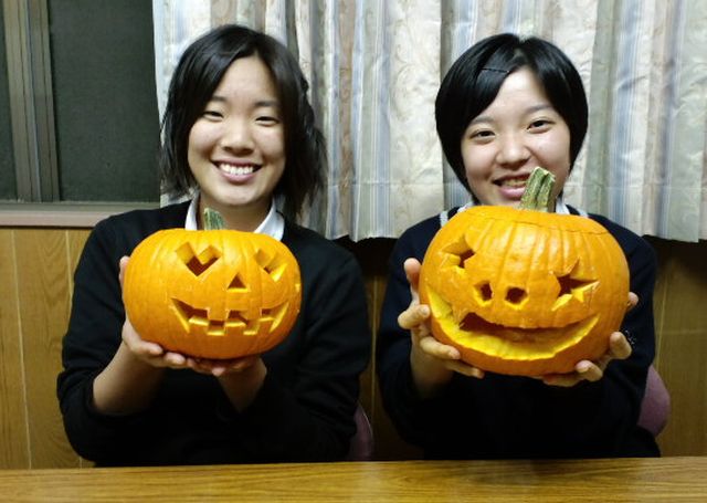 手前がアーティストMasakoさんのパンプキン脳みそ